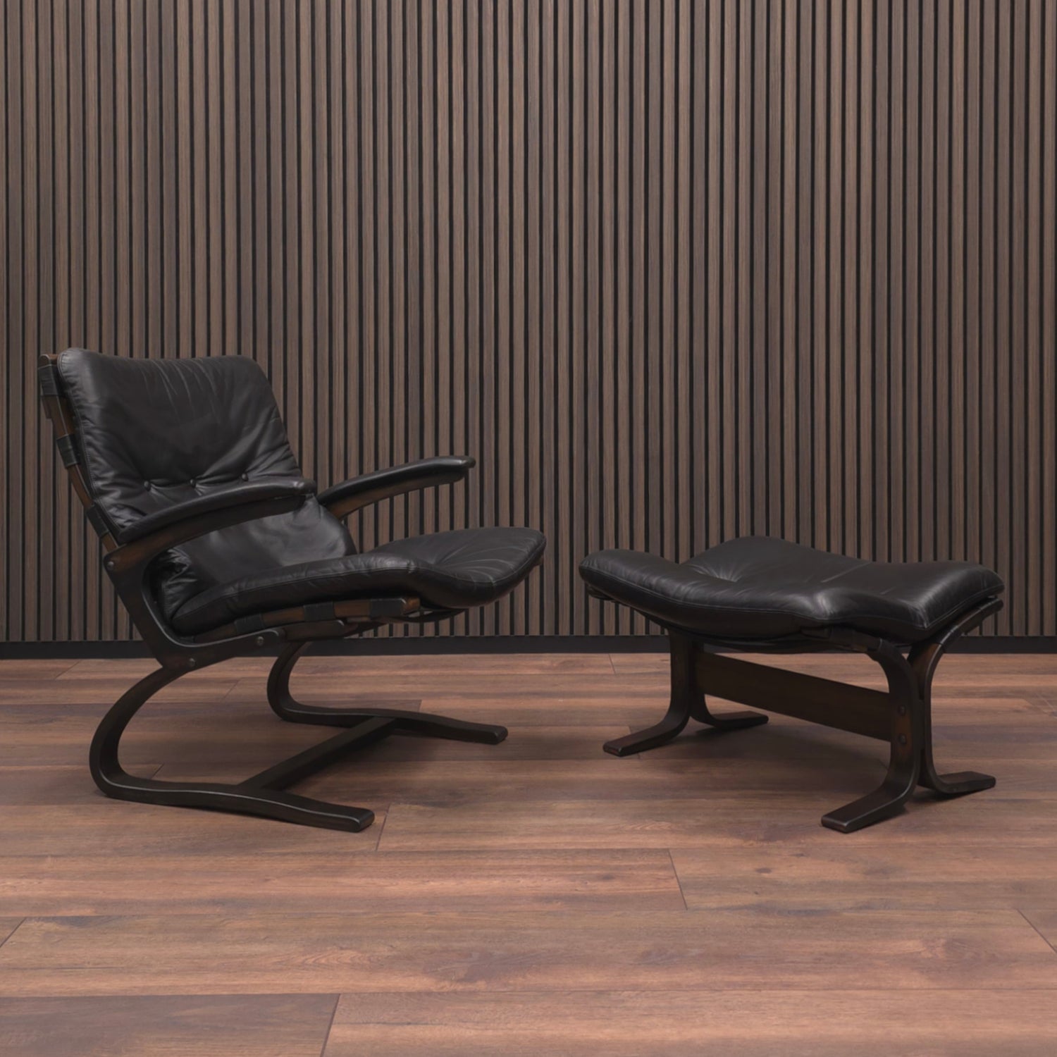 Rybo Rykken KENGU | Sessel & Hocker | 60er Palisander Vintage Leder Lounge Chair